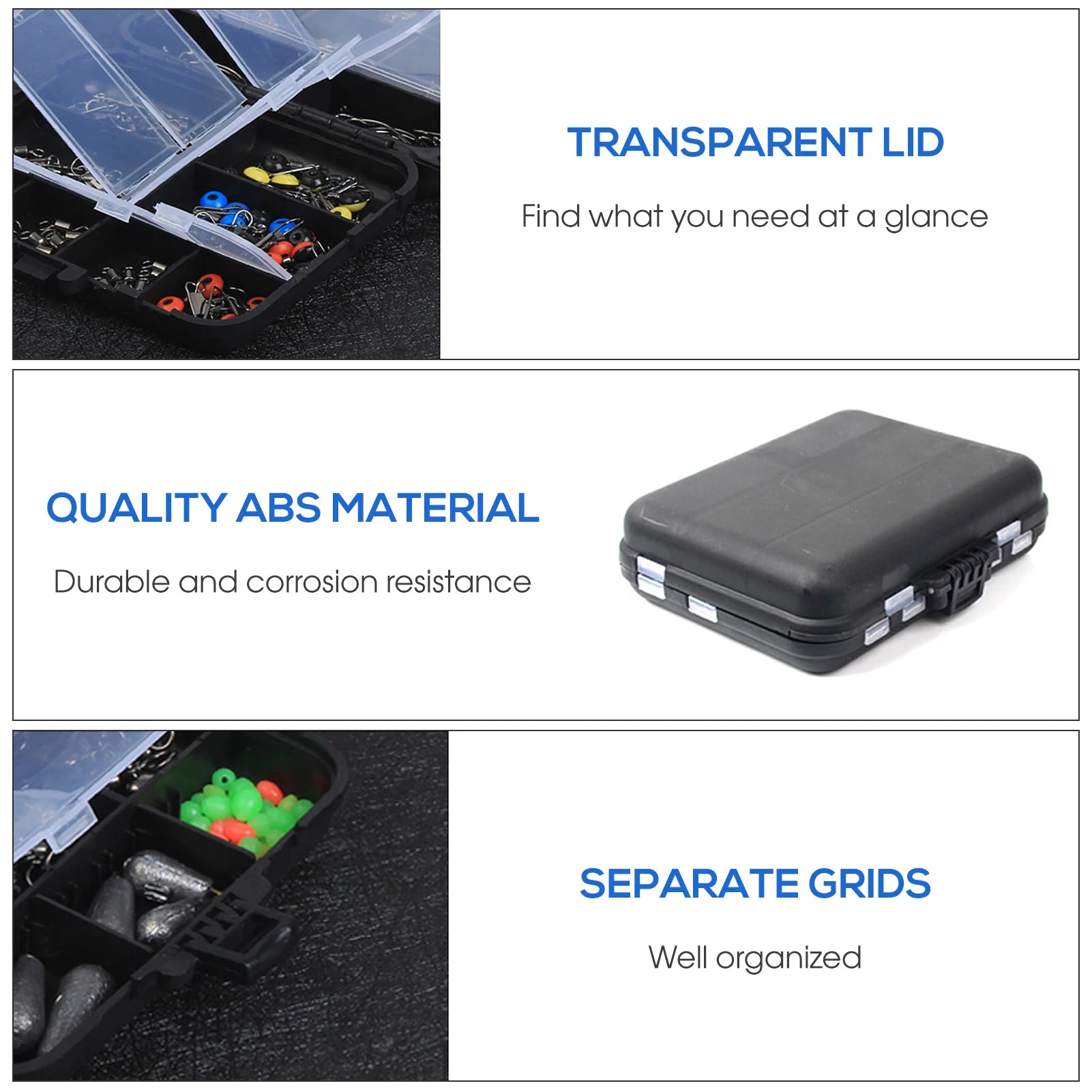 Come with a fishing box and a multifunctyion pliers, 263pcs fishing accessories are included in the box, like fishing hooks, sinker weights, floats, plastic sheets, snaps, snap swivels, sinker slides, crimp sleeve, etc.