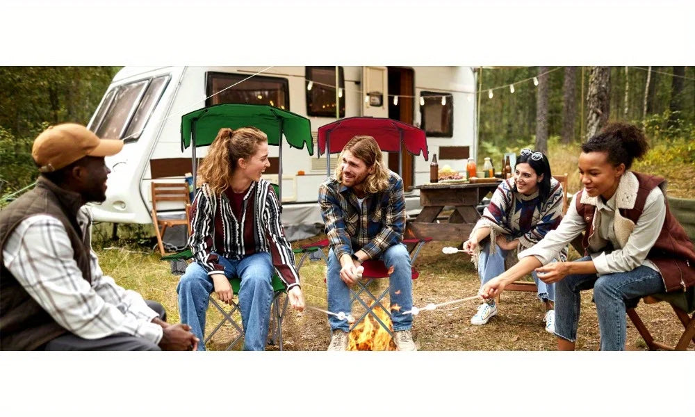 [SKIN-FRIENDLY FABRIC AND ERGONOMIC] - folding chair with canopy The seat is crafted with thick 600D Oxford fabric with a full steel frame, which is characterized by great tear resistance, wear resistance, and long-lasting durability to withstand all kinds of weather. The breathable surface provides a comfortable skin touch. Besides, beach chairs with umbrellas the ergonomic seat perfectly fits your body curve for a better sitting experience.