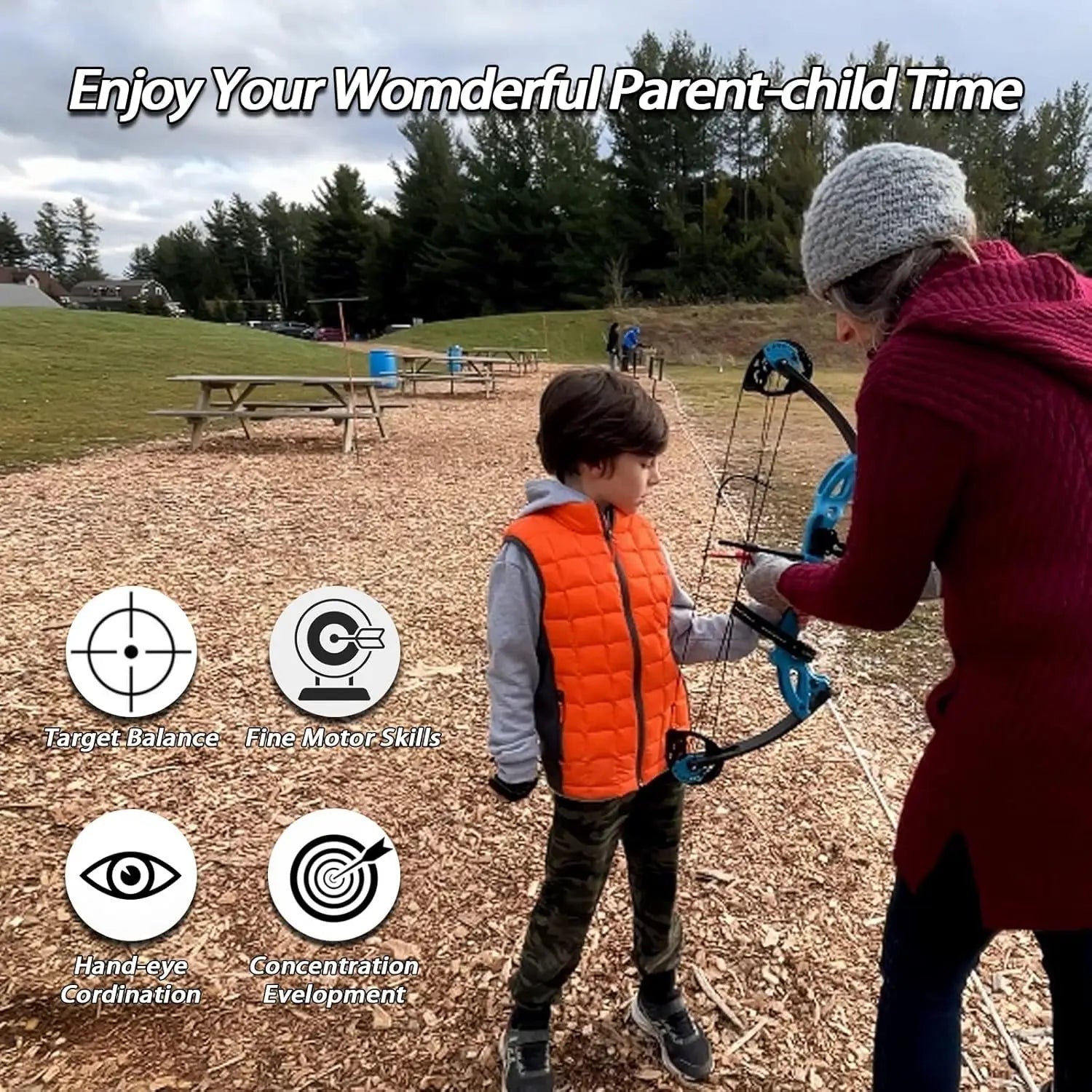3. 【Only Avaliable for Left Hand】This left-handed hunting compound bow will be held in your right hand, pull the strings with your left hand and determine the arrow with your left eye to achieve perfect aim. Lanneret's youth archery compound bow Lanneret's youth compound bow is perfect for outdoor archery, target training and practicing sports games. You can enjoy archery time with your children.