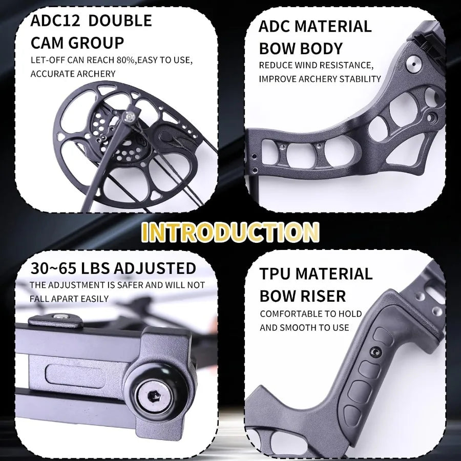 Compound Bow and Arrow Set for Adults Archery Shooting Bow Adjustable 3065LBS Composite Bow Combination 19.530 Draw Length Hunt