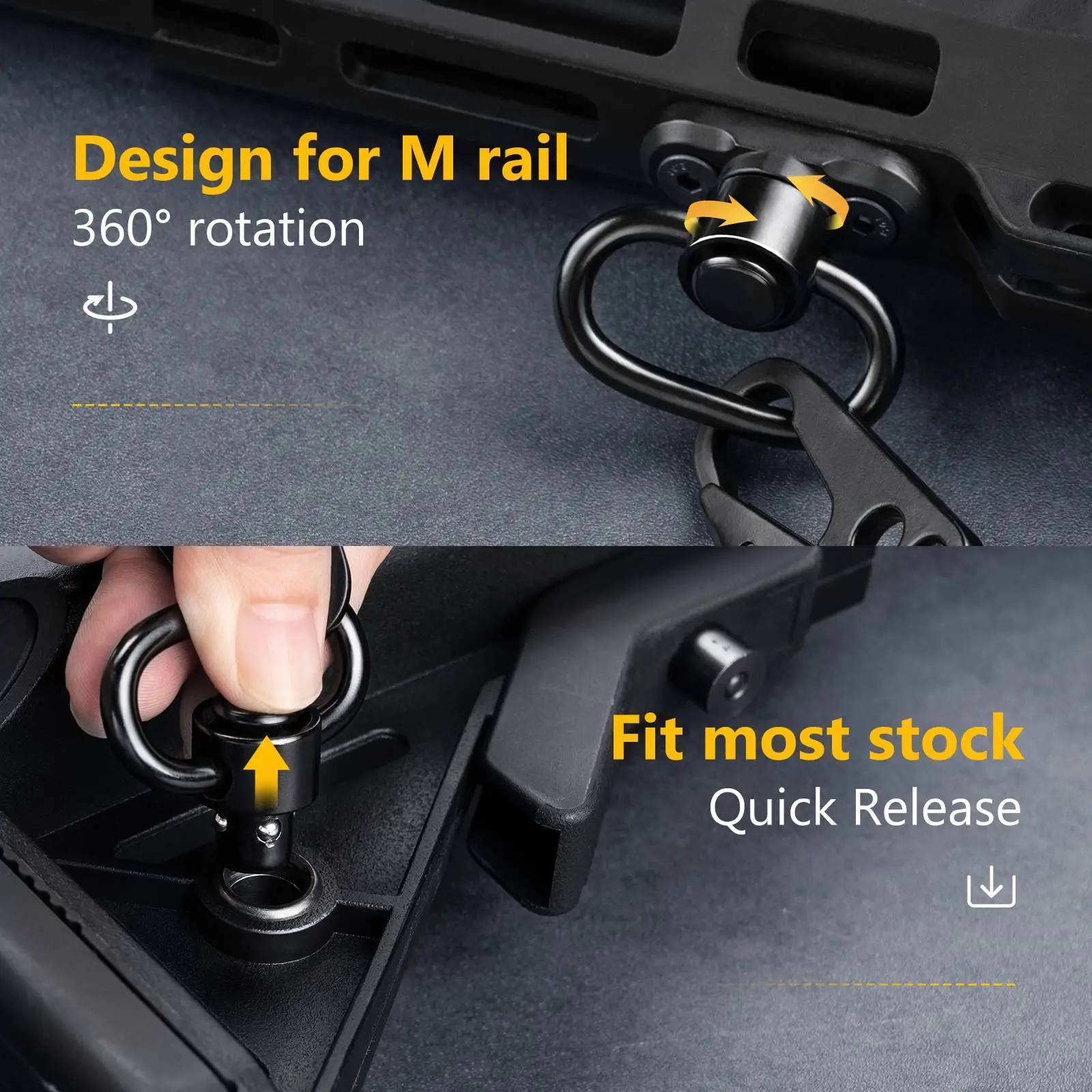 Sling Swivels: The swivels of gun strap can provide rock-solid sling connection points. We present a hexagonal wrench so that you can easily install the swivel base on the rail. The gun sling swivels and the sling swivel base are match and never fall off. You can press the button of the sling swivels for easy installation and removal. The sling swivels can be rotated 360 degrees