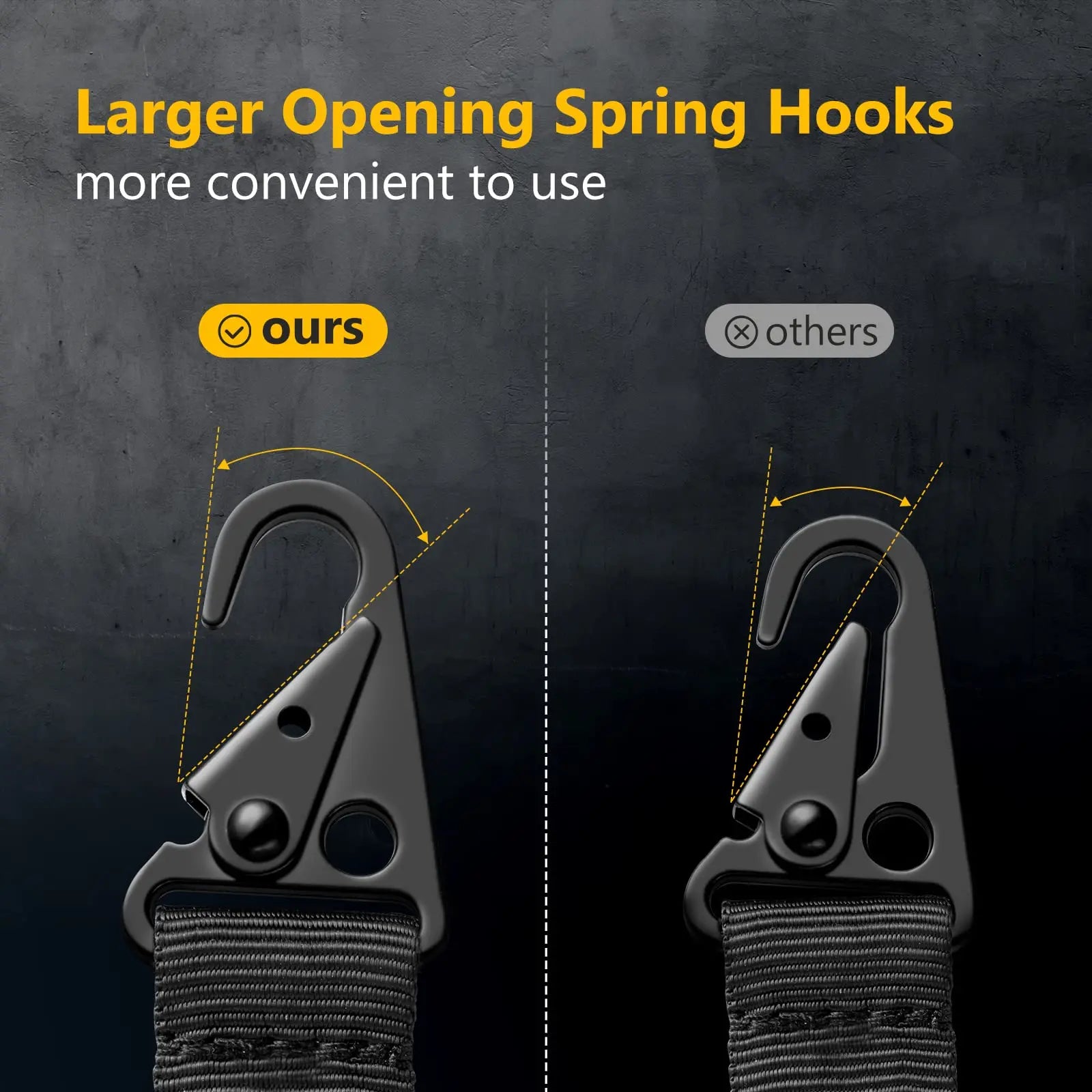 Larger Opening Spring Hooks: Compared with other products, our spring hooks of rifle sling has a larger opening and is more convenient to use