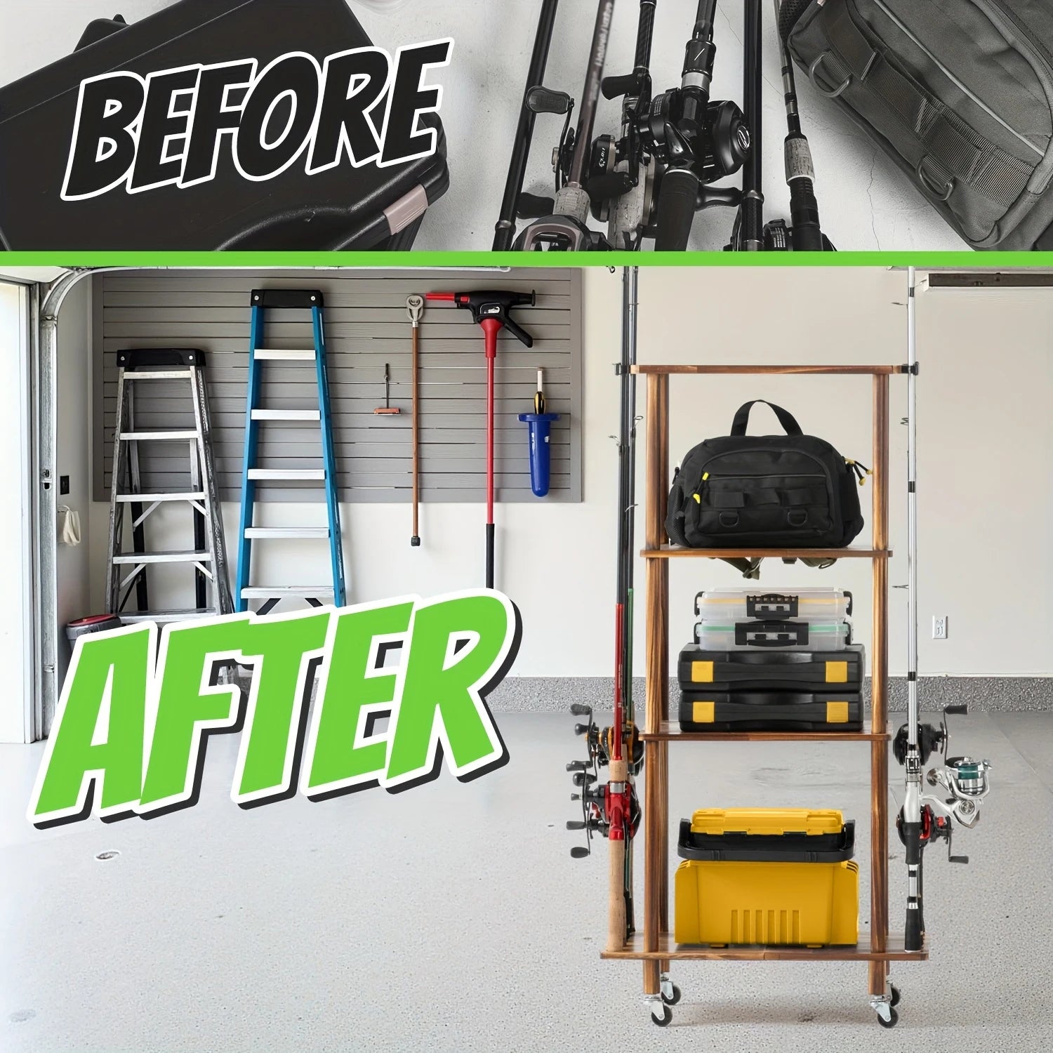 Fishing 10 Rods Rack 3 Tier Fishing Storage Rack, Space-Saving Fishing Rod Holders for Garage, Fishing Gear Tackle Box Fishing E