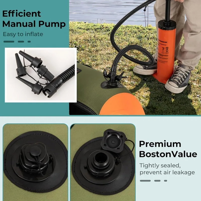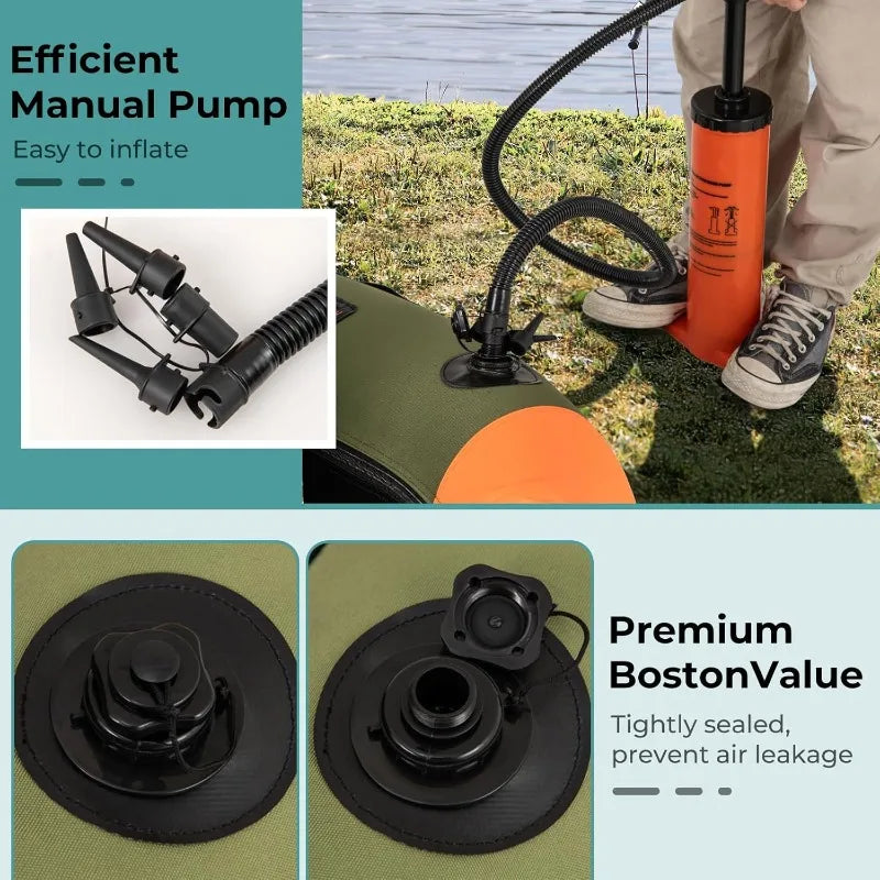 - 【Easy Inflation】The float tube comes with an efficient manual pump that facilitates quick and hassle-free inflation, ensuring safe buoyancy on water. The premium Boston valve is tightly sealed to prevent air leakage.
