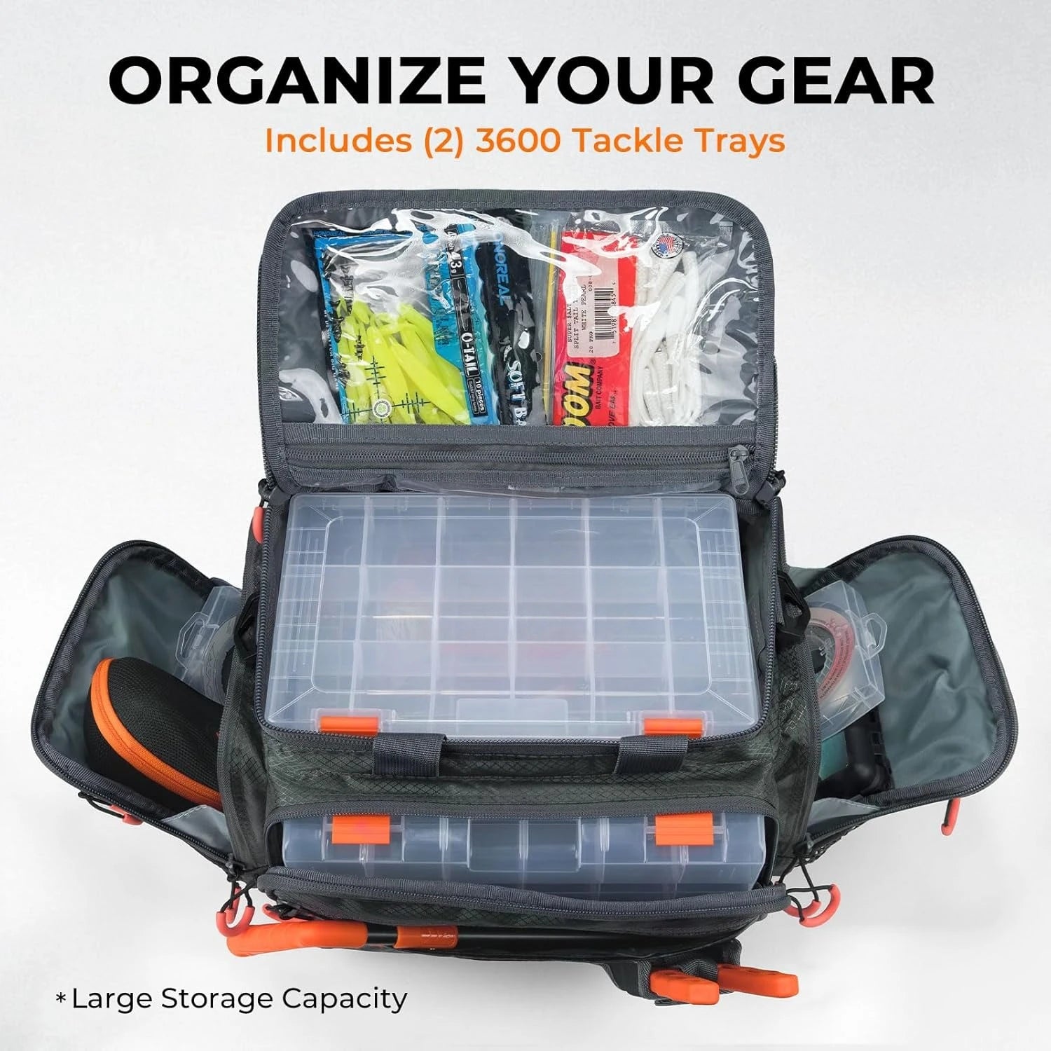 ORGANIZE – The tackle bag is perfect for transporting fishing gear. A large main section holds (6) 3600 size tackle box trays horizontally or vertically and internal pockets store small items such as keys, wallet or phone. 7 external zippered and slip pockets provide storage for trays, terminal tackle, tools and more. External rubber coated mesh pockets can secure leader line, rain gear, pliers, or any other items for quick access.