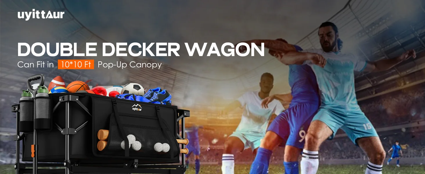 3. On-the-Go Convenience: Experience Ultimate Convenience with the double decker wagon! This versatile travel companion is foldable for effortless portability and compact for easy storage. When folded, it conveniently measures 35" x 10.2" x 13.2", fitting perfectly in your car boot, garage, or wardrobe. Remember to securely attach the clips on the bottom when you fold it.