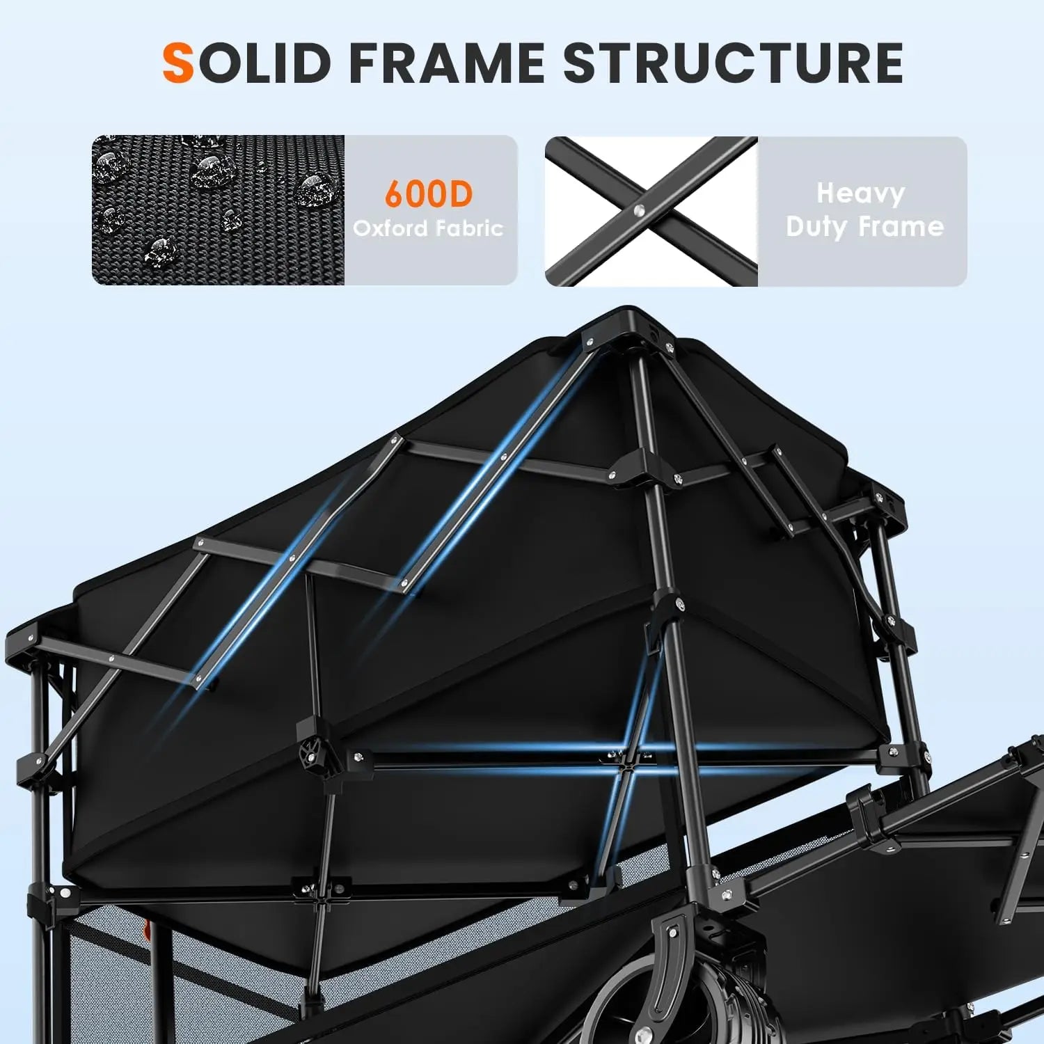 4. Superior Additional Capabilities: We've paid more attention to what our customers need, and we've come up with some other thoughtful designs. We've added large side pockets for your umbrella and books, and two cup pockets for your drinks. We've got a carry-on bag so you can keep your wagon safe while you're traveling and having fun outdoors.