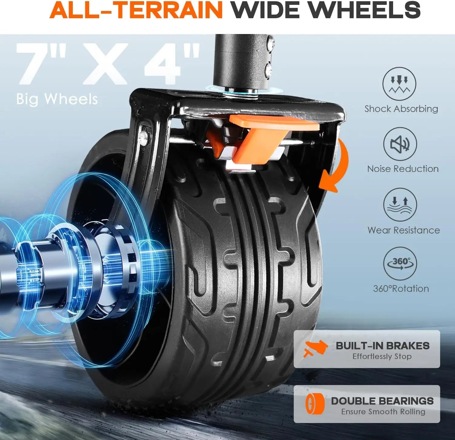 2. Experience Unmatched Durability: Dominate any terrain with the robust 7x4 inch all terrain wheels at your disposal! The front wheel brakes grant you complete control, ensuring seamless stops and starts on your thrilling escapades. Prepare yourself for an upcoming adventure like no other! Kindly notice that these wheels are not recommended for soft sand.