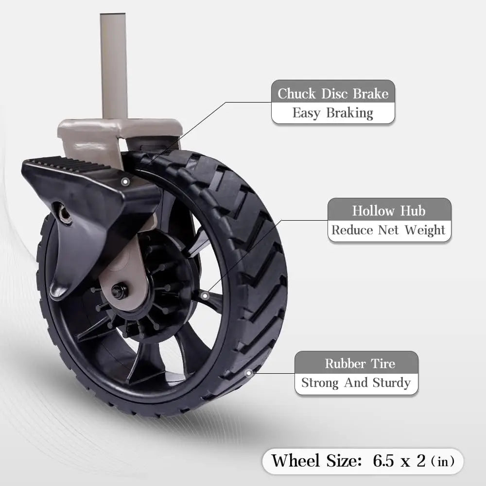 5. Two Brakes & Built-in Dual Bearings: Featuring silent, 360° rotating front wheels; Dual-bearing design The double bearing design makes smooth rolling on mud, grass, and sand; two brakes allow the wagon to stop smoothly on slopes