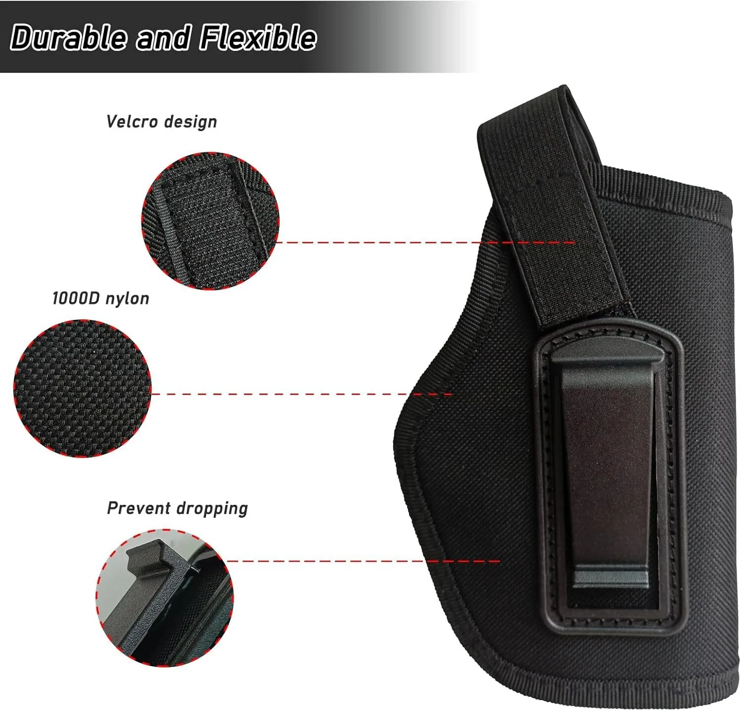 【Nylon Material】-The soft elastic cord of glock 19 holster case is made of TPU material. The concealed carry holster made of rugged 1000D nylon not only has a beautiful design, but also has good abrasion resistance, making gun holster for men/women even better in the field.