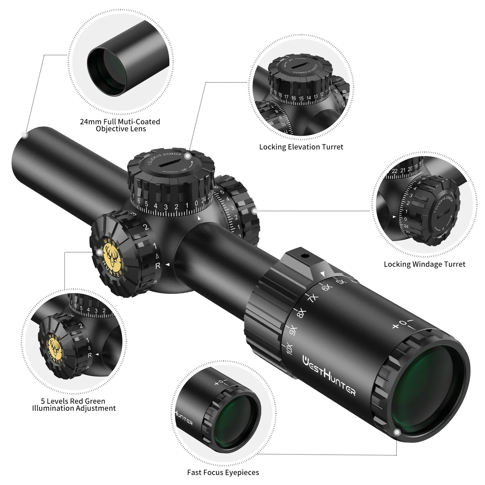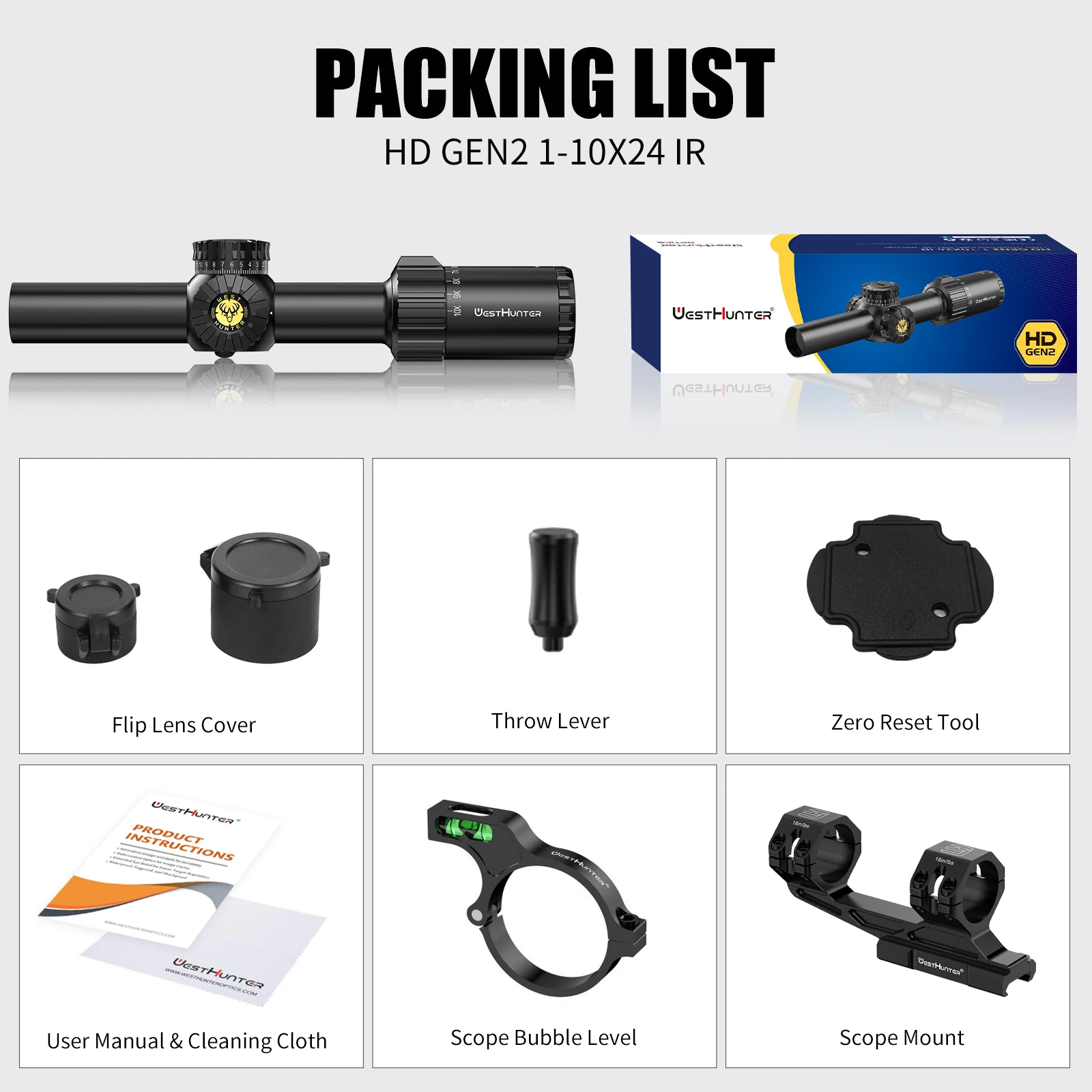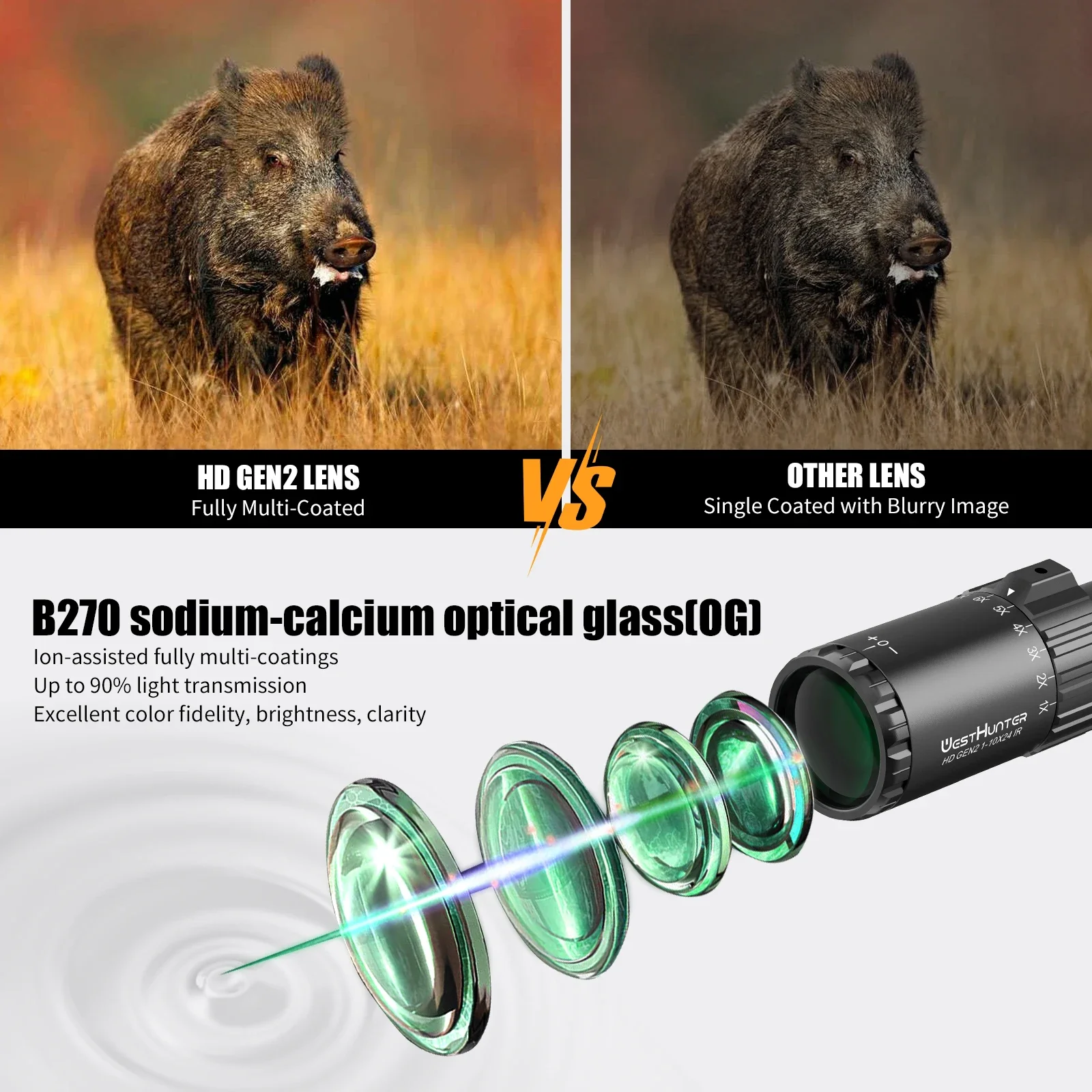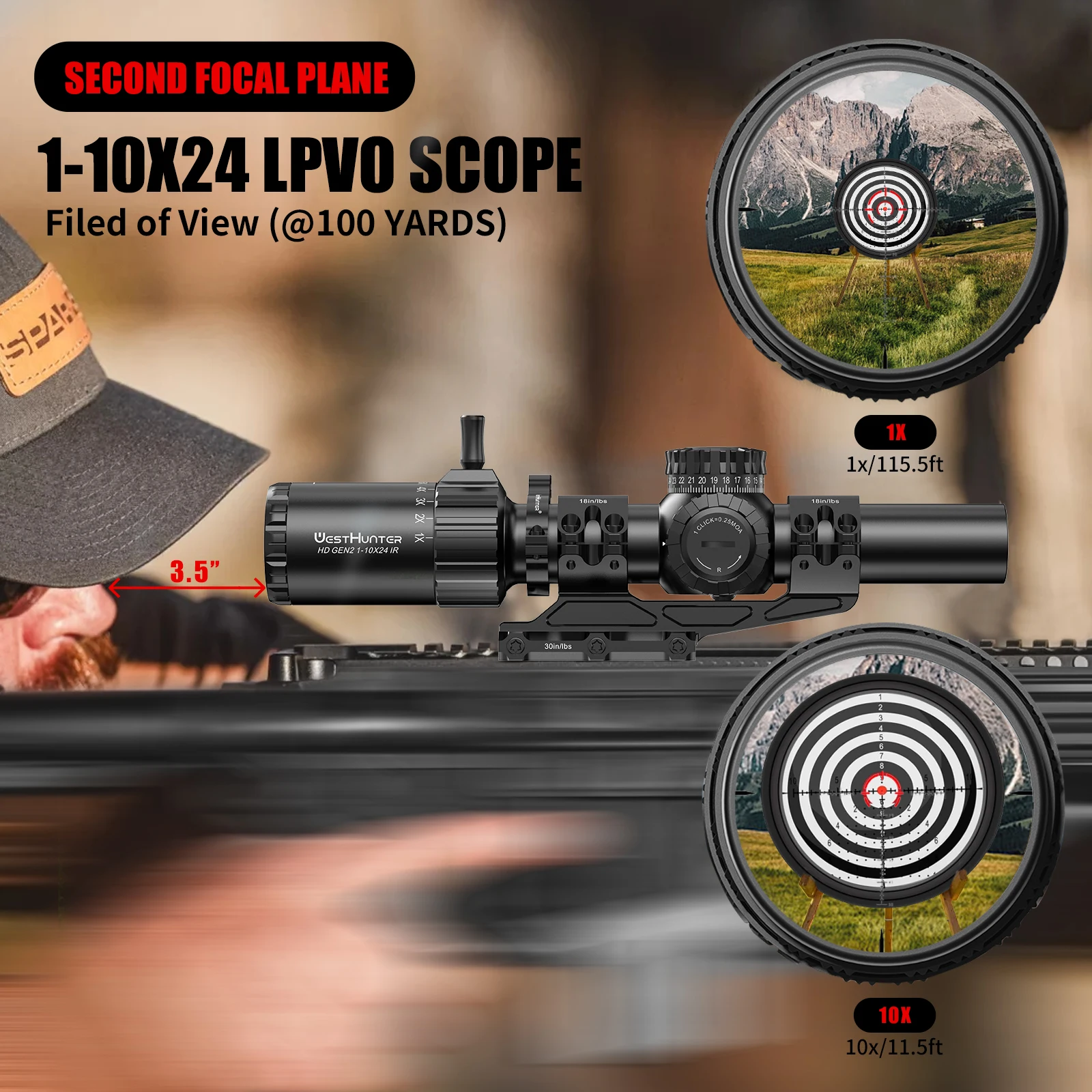 HD GEN2 1-10X24 IR Compact Scope LPVO Optical Sights R/G Illumination 1/4MOA Reticle Hunting Riflescope