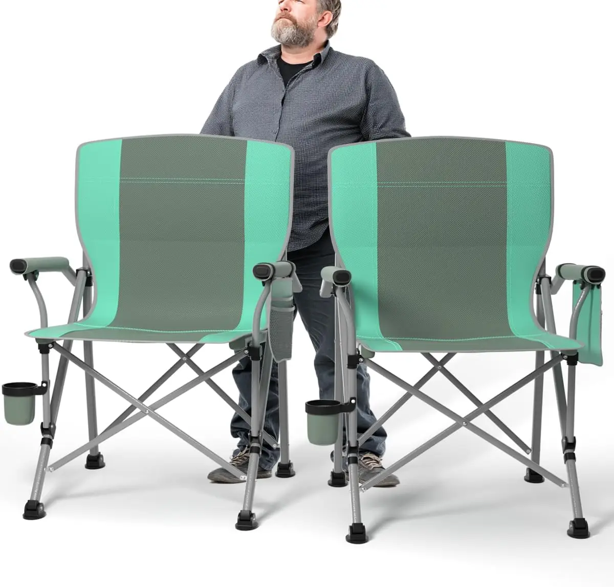 Heavy Duty Oversized Camping Chair for Adults with Side Pockets, Foldable for Outdoor Camping Fishing Beach Hiking