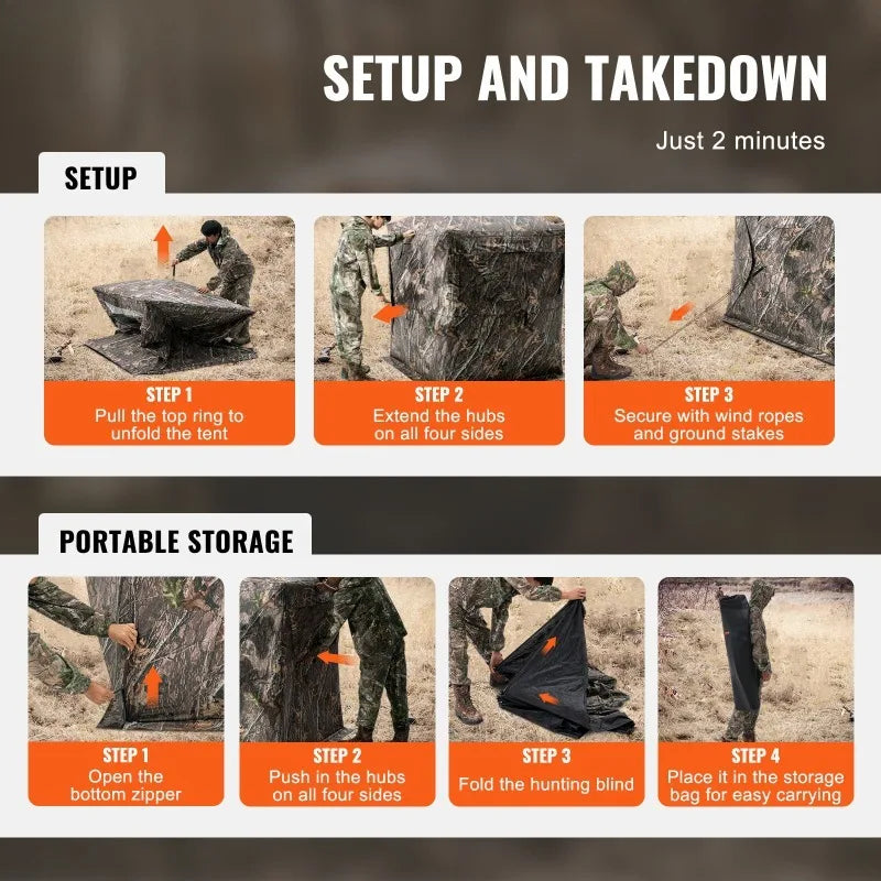 Hunting Blind, 270° See Through Ground Blind, 1-2 Person Pop Up Deer Blind for Hunting with Carrying Bag, Portable Resilient Hunting Tent, 3 Horizontal Windows for Turkey and Deer Hunting