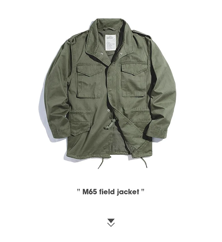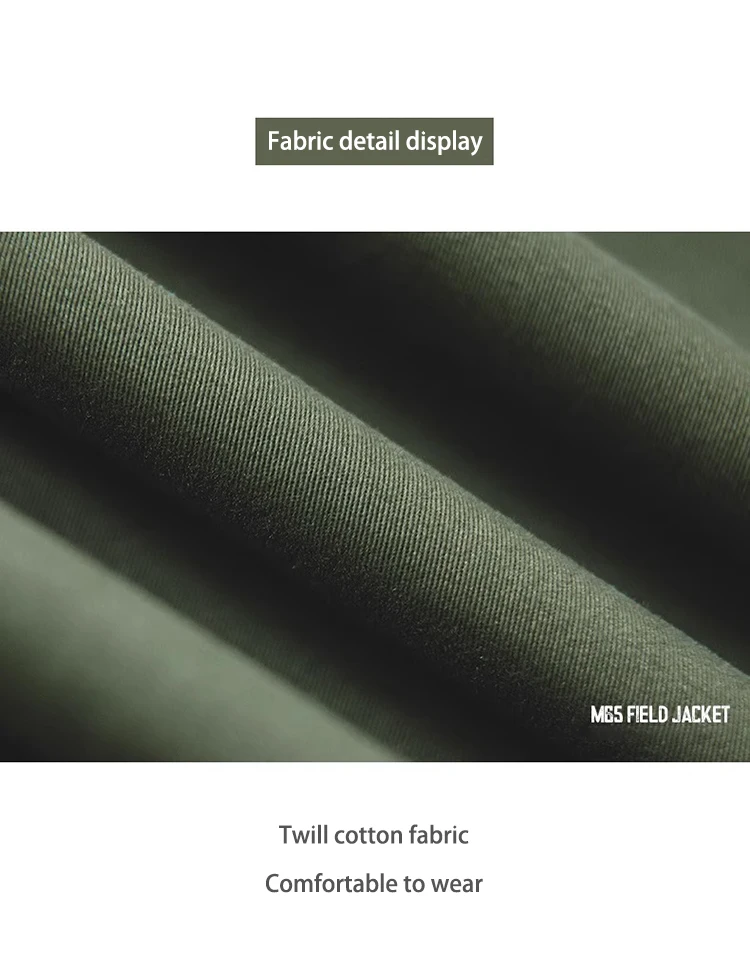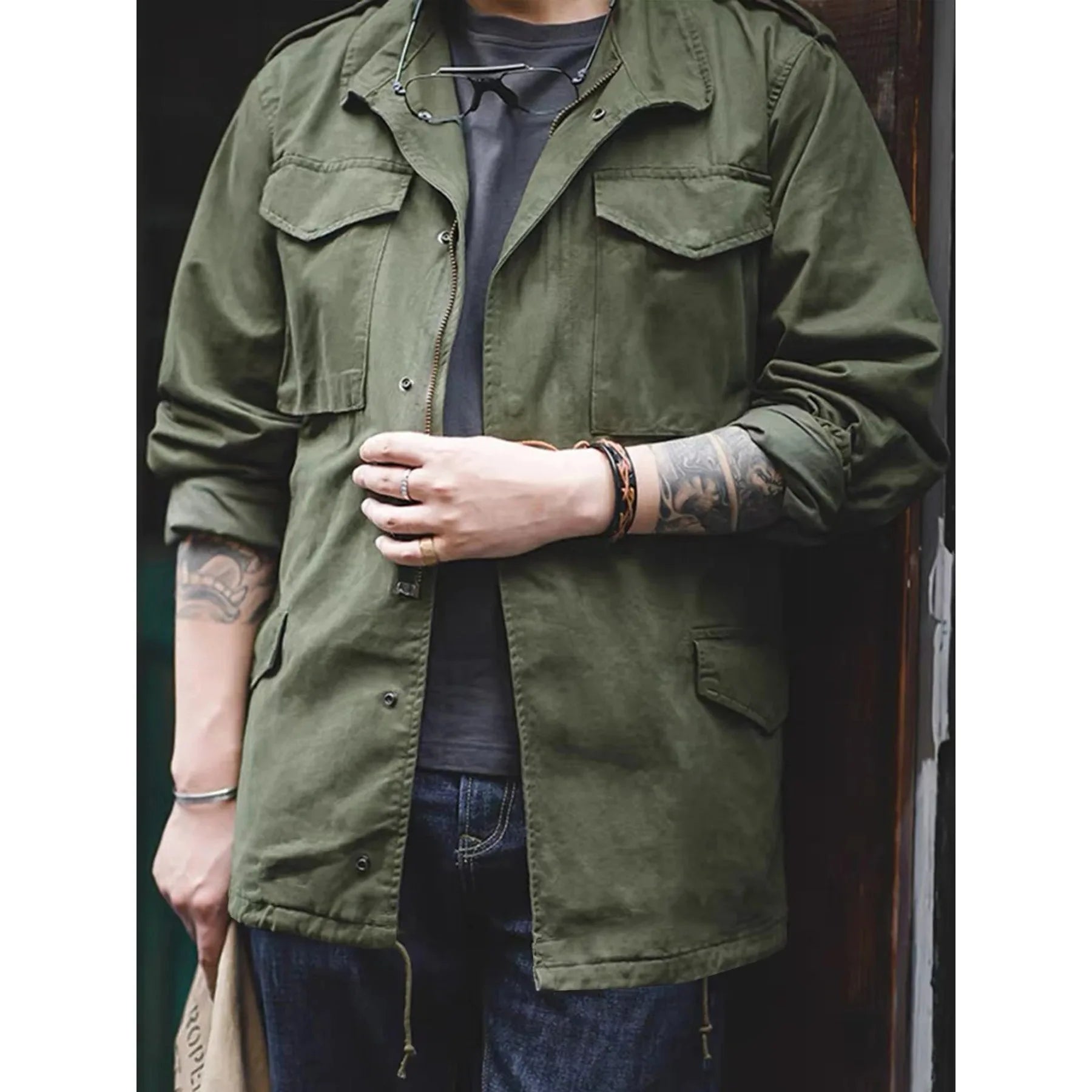 M65 Field Jacket, Men's Military Jacket, Retro Multi Pocket Collar Zipper Jacket, 100% Cotton