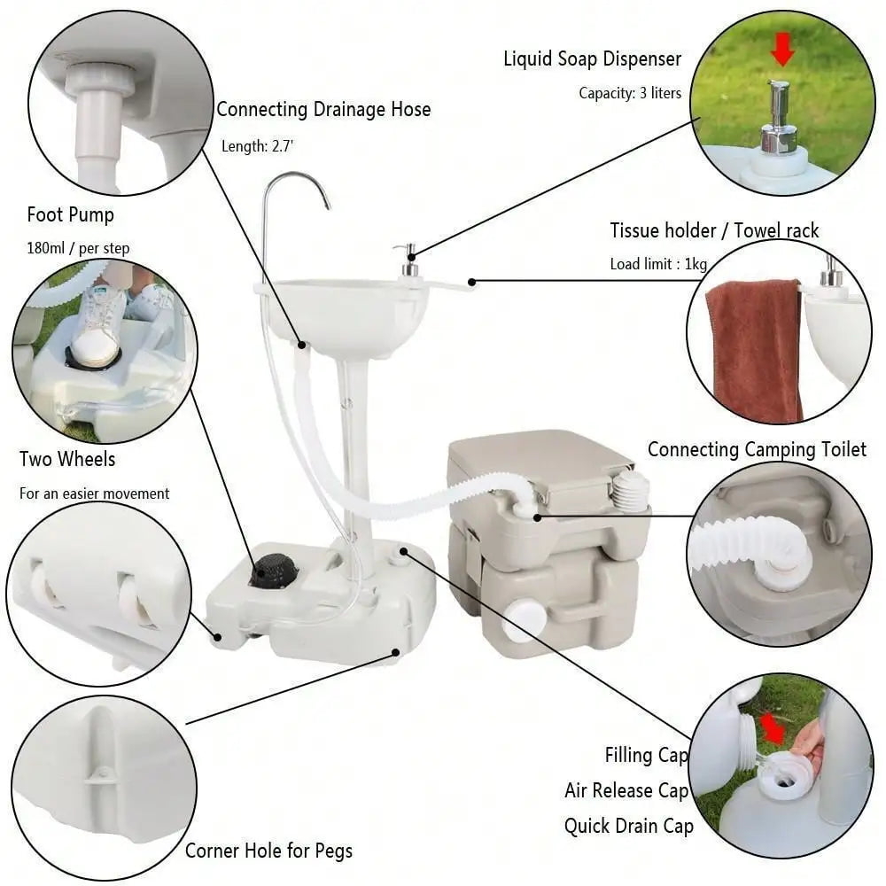 Portable Camping Toilet Flush 20L And Durable Sink Station Hand Wash Stand Fauce