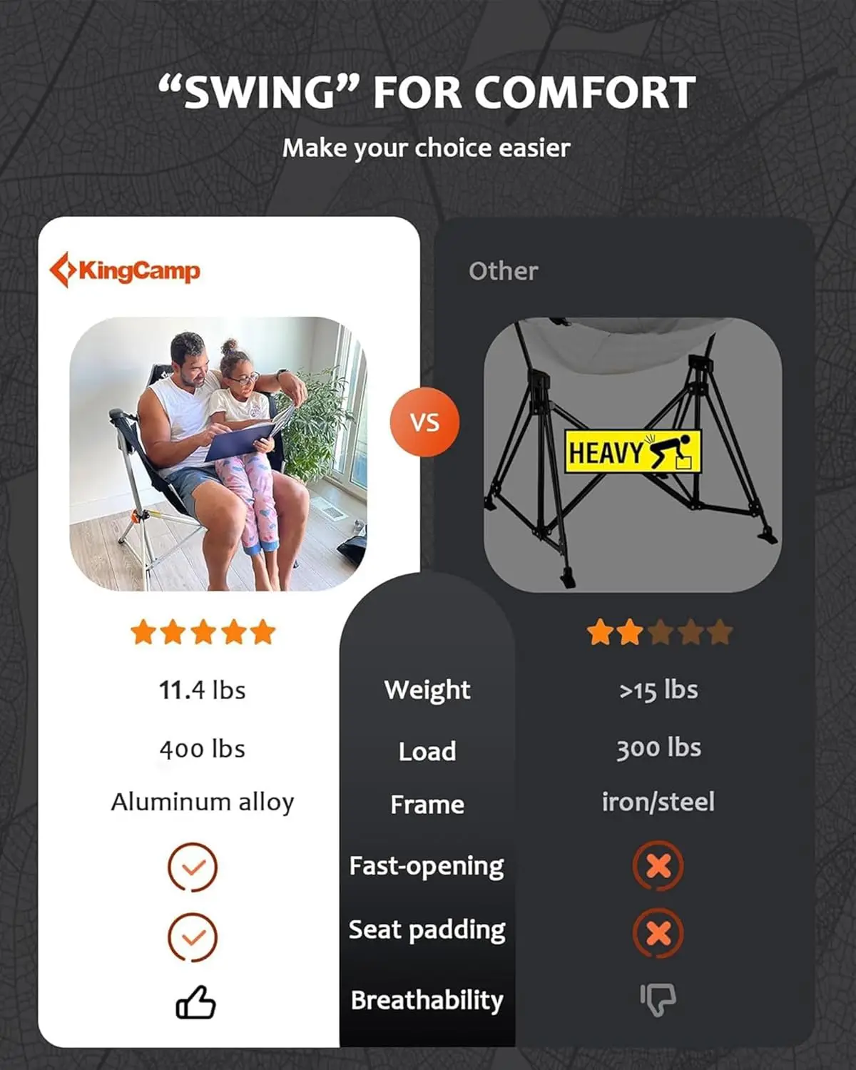 Portable Folding Hammock Chair with Footrest, Heavy Duty Rocker for Outdoor Camping Beach Patio, Max 400lbs