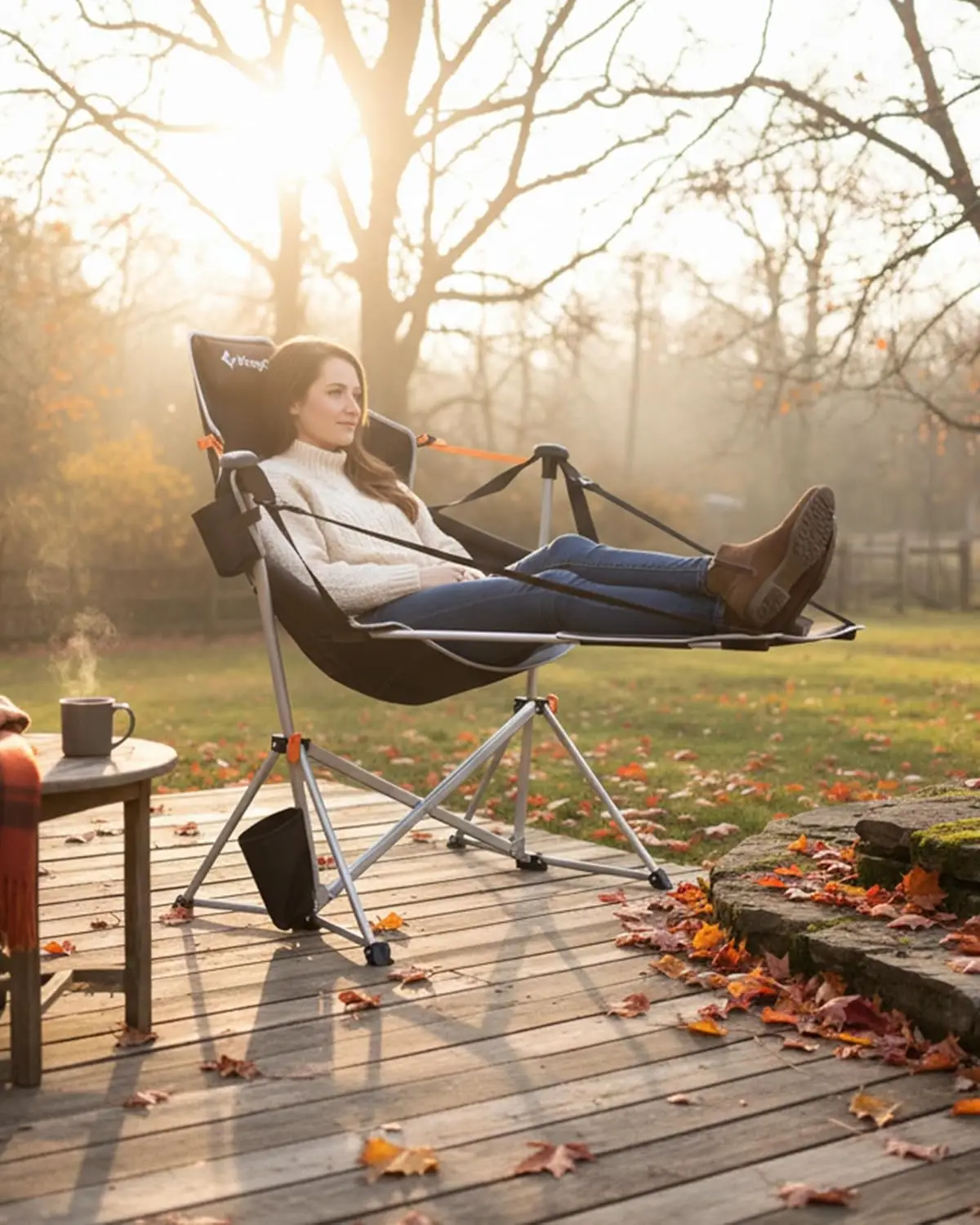 Enhance your outdoor relaxation with our premium hammock chair, designed for comfort and durability. Key features include: 1. **Heavy-Duty Construction**: Supports up to 400 lbs, made from sturdy materials for long-lasting use in various environments. 2. **Portable and Foldable Design**: Easy to set up and transport, perfect for camping trips, beach outings, or backyard lounging. 3. **Comfort Enhancements**: Includes a built-in footrest and soft pillow for ultimate relaxation; cup holder keeps drinks within reach. 4. **Versatile Usage**: Ideal for adults seeking a cozy spot in gardens, patios, lawns, or during sports events. 5. **Space-Saving Storage**: Folds compactly when not in use, saving space without compromising on quality. This chair combines functionality with style to elevate your outdoor experience.