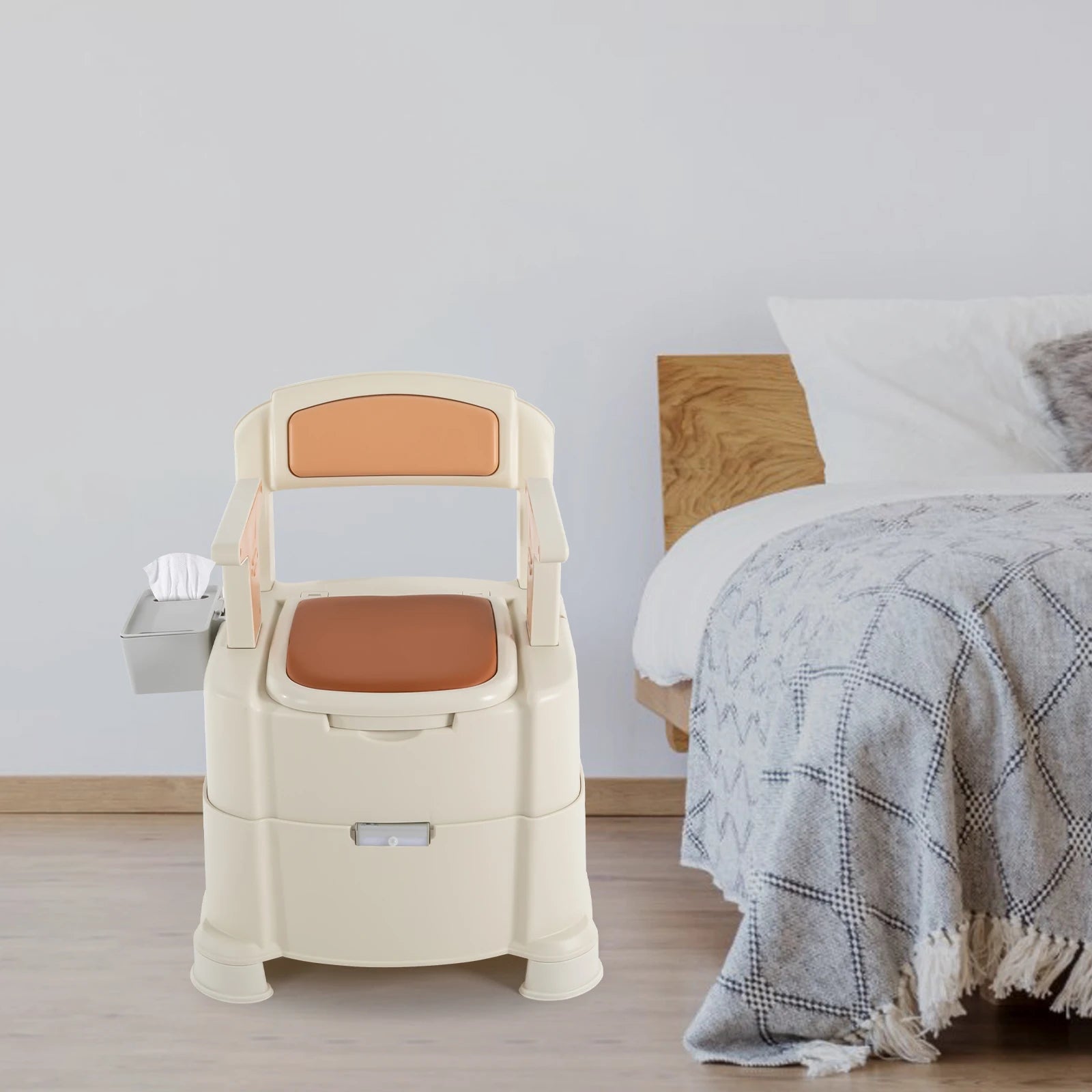 User-friendly: The inner bucket with handle makes it easy for you to change it quickly, the tissue box on the side makes it easy to access paper towels, and the removable support armrests make it easier for you to sit and stand, as well as to use it against the bed.