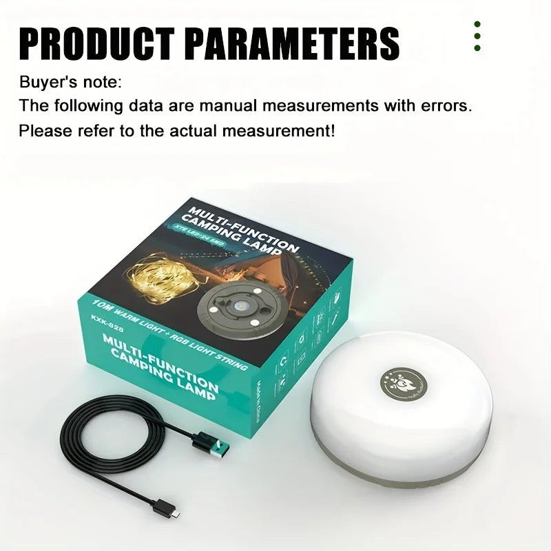Rechargeable 32.8FT Camping String Lights - 2 in 1 Quick Storage Tent Lights with 5 Lighting Modes - Hanging Portable LED Lamp f