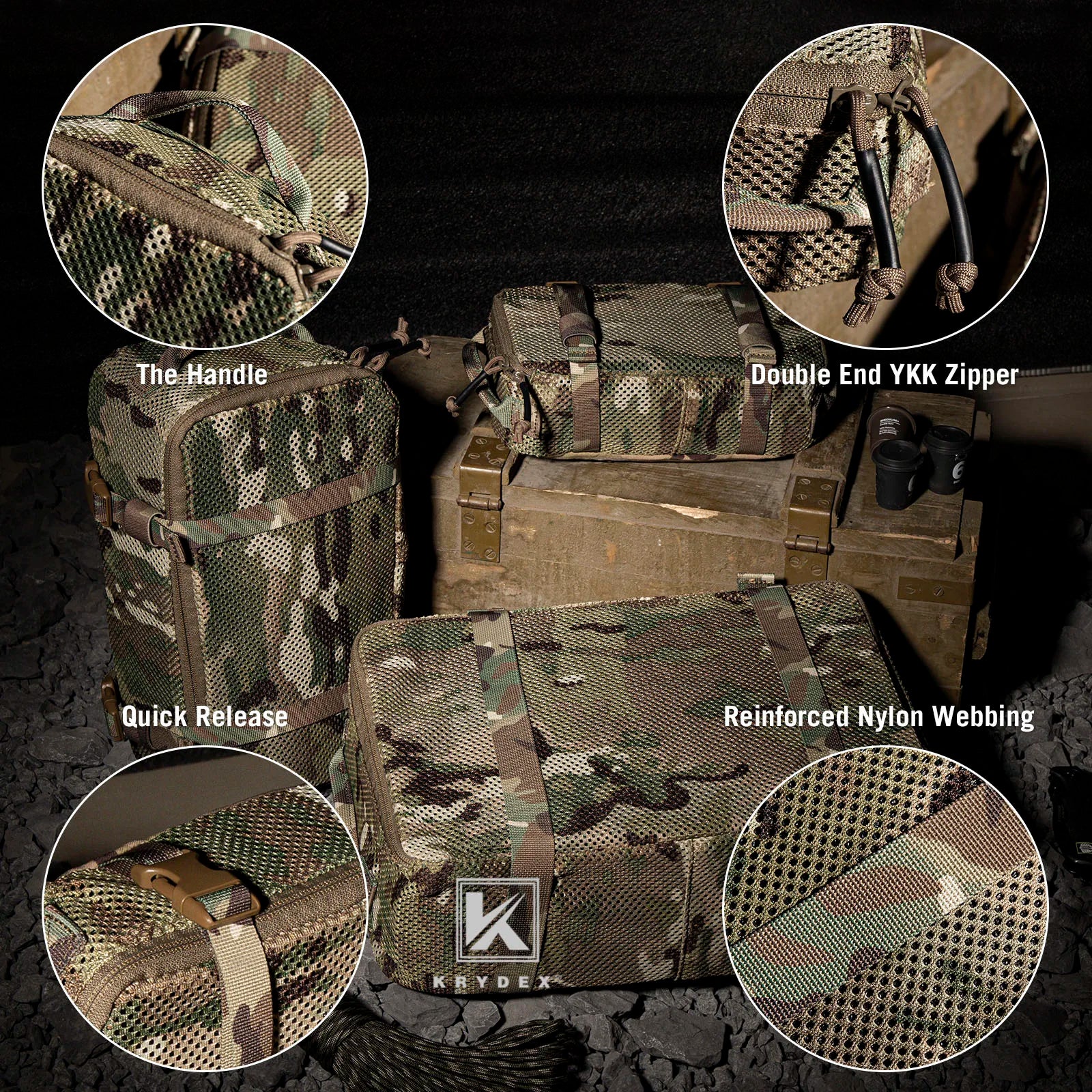 * Made of nylon mesh and two-way YKK zippers, Mesh fabric allows you to quickly identify the contents, Smooth YKK zippers ensure easy no-snag access in any scenario.